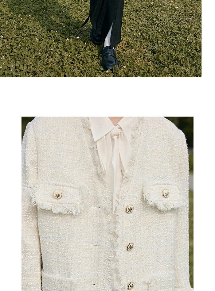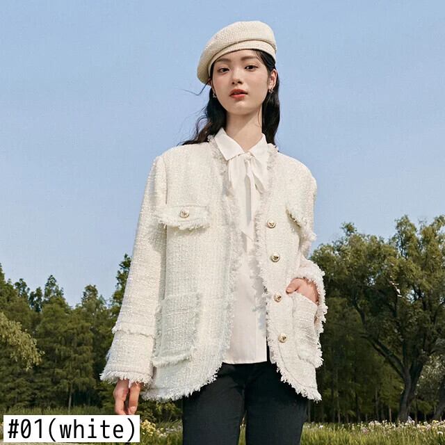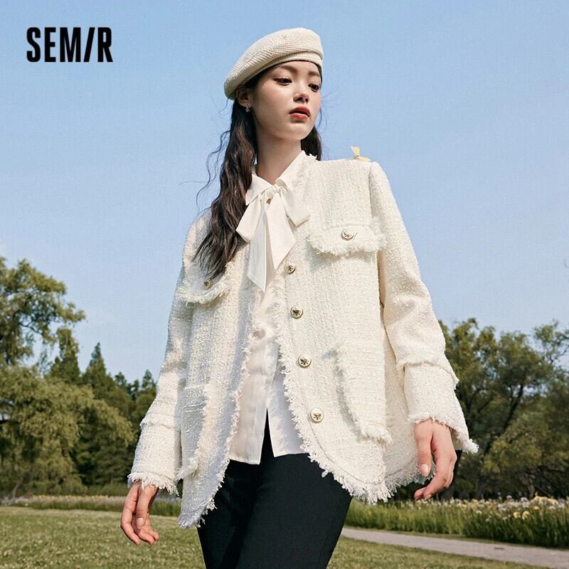 送料無料 Semir 2023 女性コート秋 V ネック通勤オールマッチラフテクスチャジャケット小さなフレグランススタイルコート女性 オータム 秋物 Vネック AE1212777710560409810