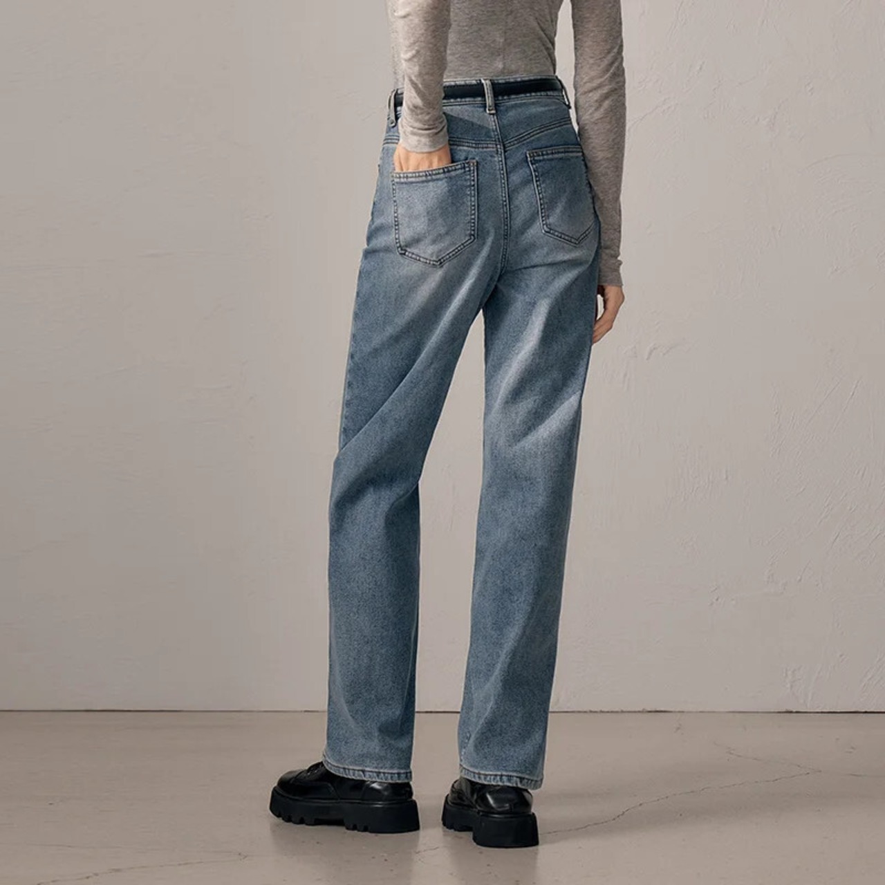 送料無料 Semir ジーンズ女性パーソナライズされたワイドレッグパンツ 2023 冬フリースパンツ ウィンター 冬物 ワイドパンツ AE121277771951697544