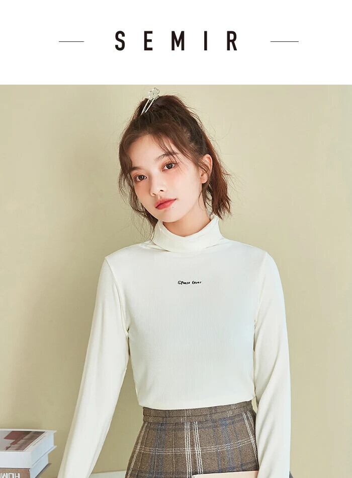 送料無料 Semir 襟下着女性冬冬肥厚下着トップつや消し長袖 Tシャツ女性 ロング ウィンター 冬物 AE1212777774347006769