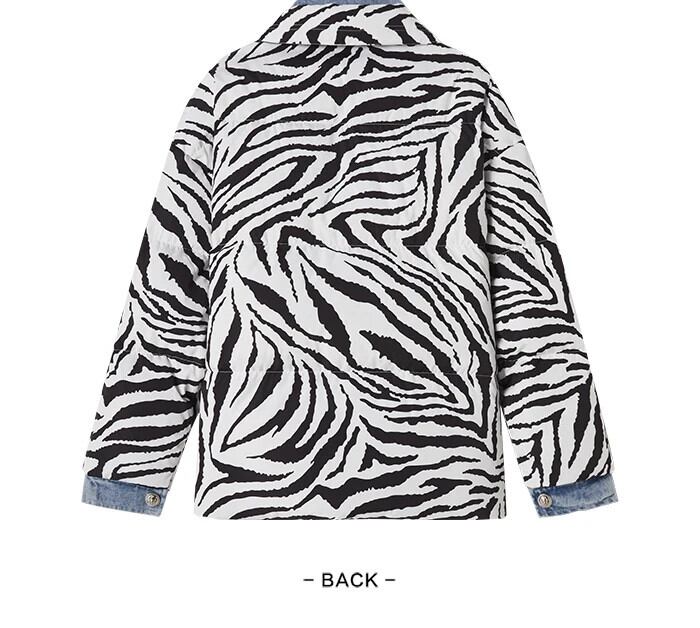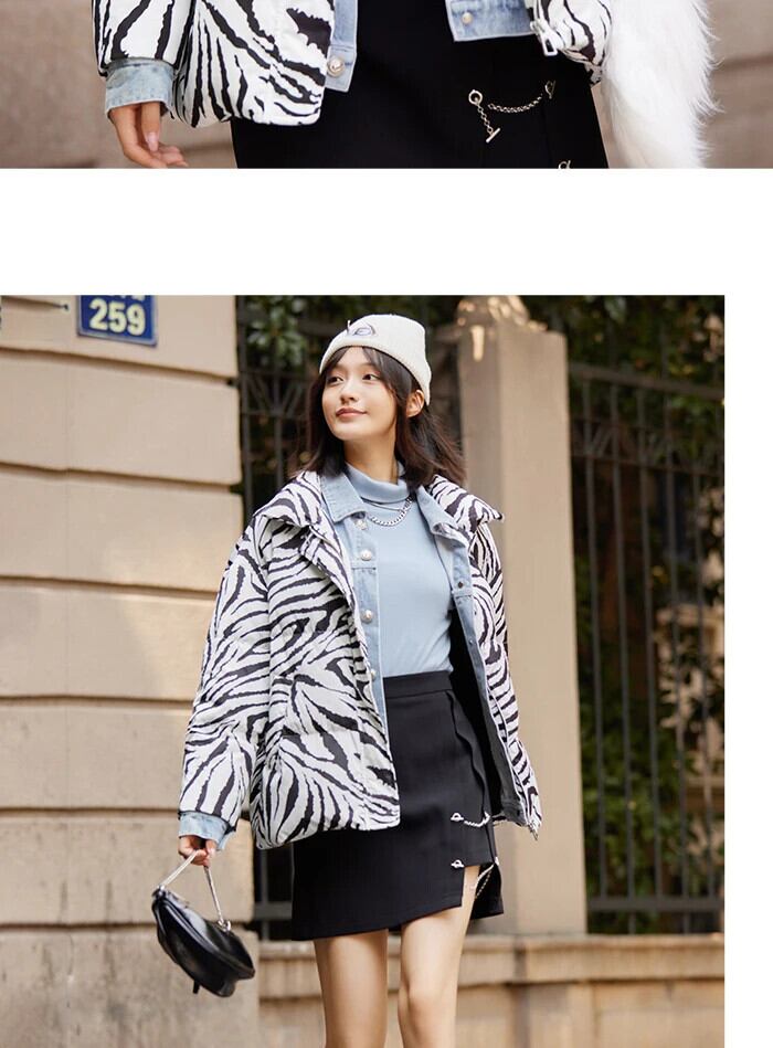 送料無料 Semir ダウンジャケットの女性ゼブラプリントコントラストカラーデニムスプライシング 2023 冬レトロルーズジャケット ウィンター 冬物 AE1212777724095915279