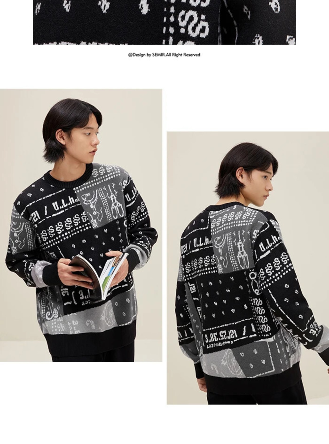 送料無料 Semir セーターメンズルーズオフショルダー 2023 冬レトロラウンドネックセーター ウィンター 冬物 Oネック AE1212777751767593857