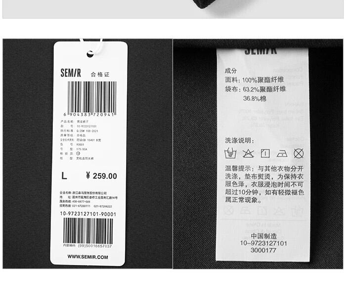 送料無料 Semir パンツ男性 2023 冬シンプルなストレート 3 プルーフ作業服スタイル屋外ルーズズボン ウィンター 冬物 AE1212777780530937358