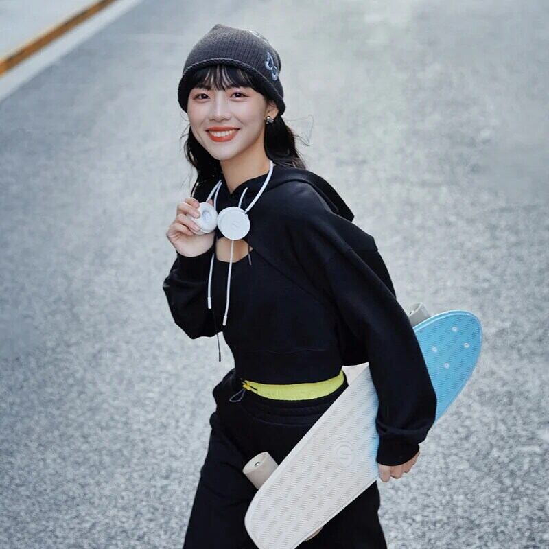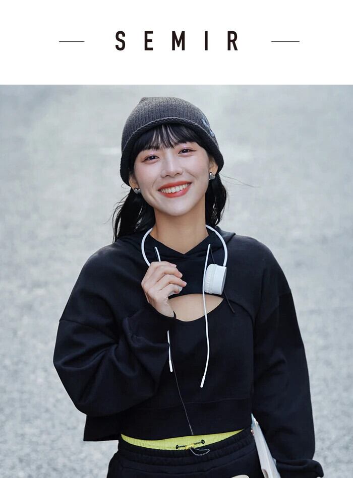送料無料 Semir 女性トレーナーショートセンス小群衆フード付き黒 2 点セット 2023 秋ルーズプルオーバー ブラック オータム 秋物 AE1212777720899374855