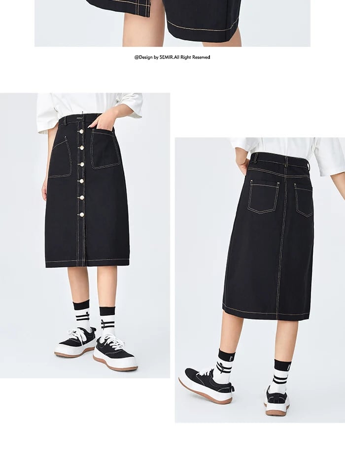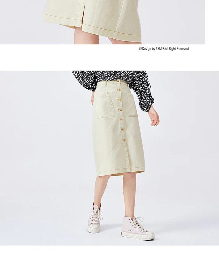 送料無料 Semir 2023 女性スカート早春感覚ブレストスカートオープンラインミッドレングススカート見た目細くスカート女性 スプリング 春物 AE1212777736316362536