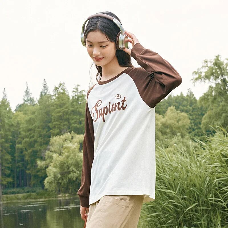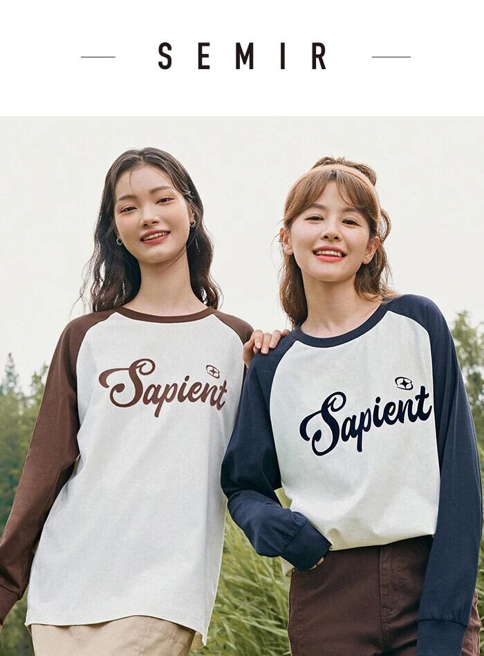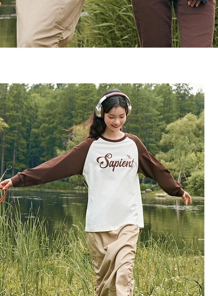 送料無料 Semir 2023 女性 Tシャツ長袖 Tシャツミッドレングスコットンルーズ 2023 レターラグランスリーブ秋の女性 ロング オータム 秋物 AE1212777778618336830