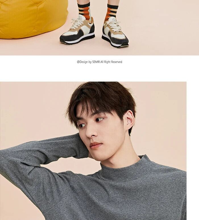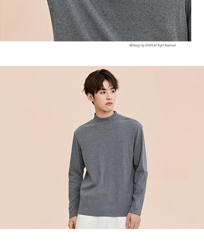 送料無料 Semir ボトリングシャツ Tシャツメンズ冬無地インナーハーフタートルネック長袖純粋な綿のセーターセーター ロング コットン ウィンター 冬物 ピュア ソリッドカラー AE1212777735669595845
