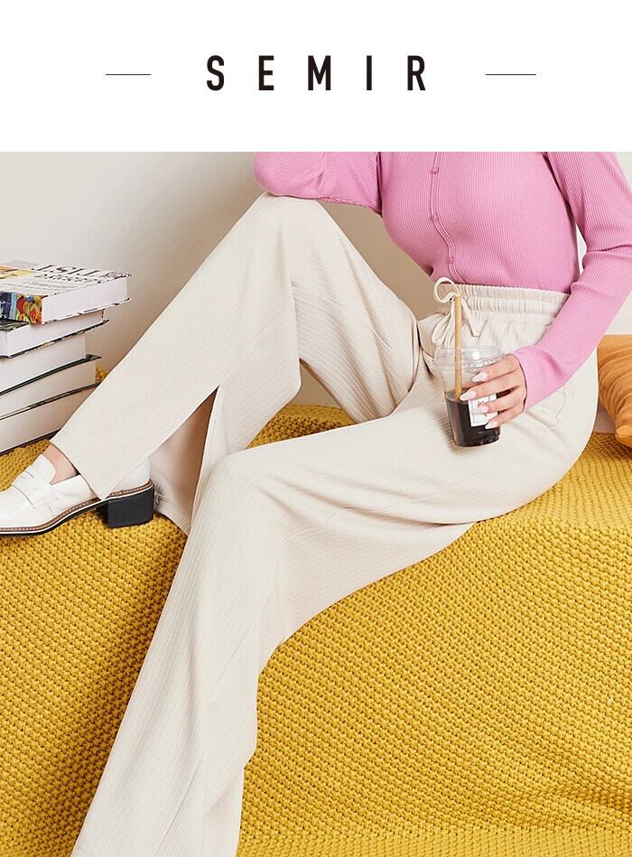 送料無料 SEMIR パンツ女性ウエストスリム 2021 秋ワイドレッグモップパンツオールマッチ無地ズボン オータム 秋物 ソリッドカラー AE1212777799260193413