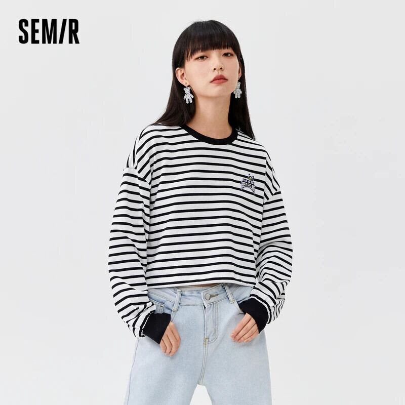 送料無料 SEMIR トレーナー女性ショートトップ 2021 秋スタイルレトロストライプ長袖薄手パーカー ロング オータム 秋物 AE1212777724774041326