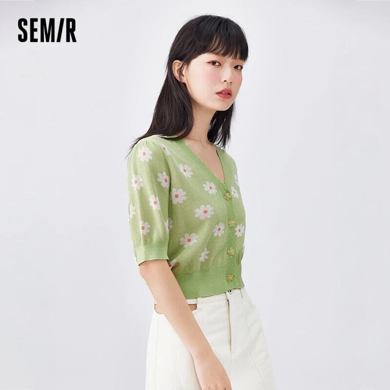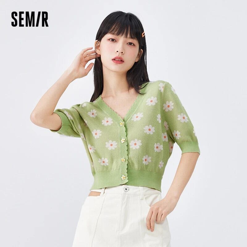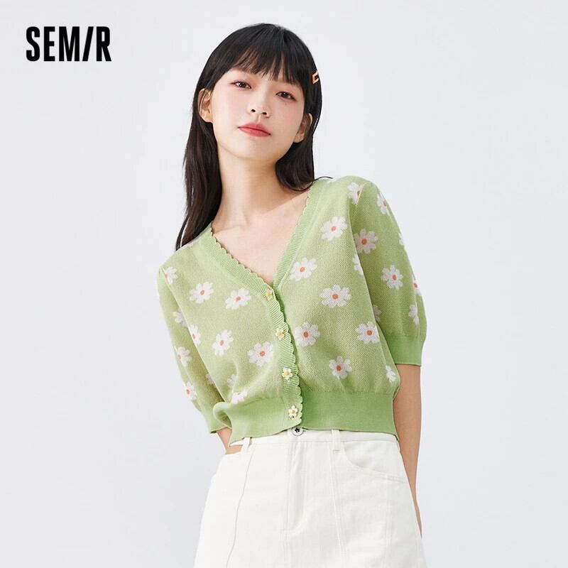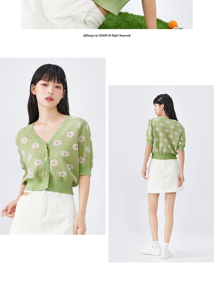 送料無料 Semir 女性ニットショート V ネック 2023 秋レースジャカードカーディガン新鮮で甘いセーター 大人ガーリー スウィート キュート カジュアル オータム 秋物 Vネック AE1212777763416688637