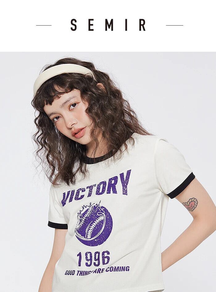 送料無料 Semir 半袖 Tシャツ女性ショートスタイルコントラストカラー旧印刷 2022 夏のレトロ Tシャツアメリカンストリートスタイル ハーフスリーブ サマー 夏物 AE1212777719645503721