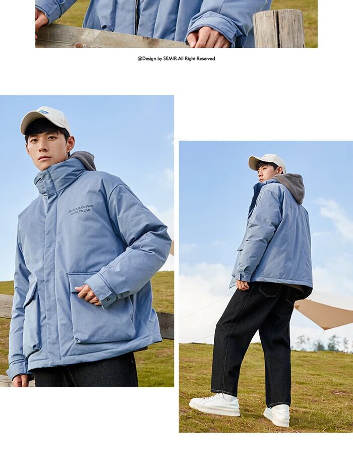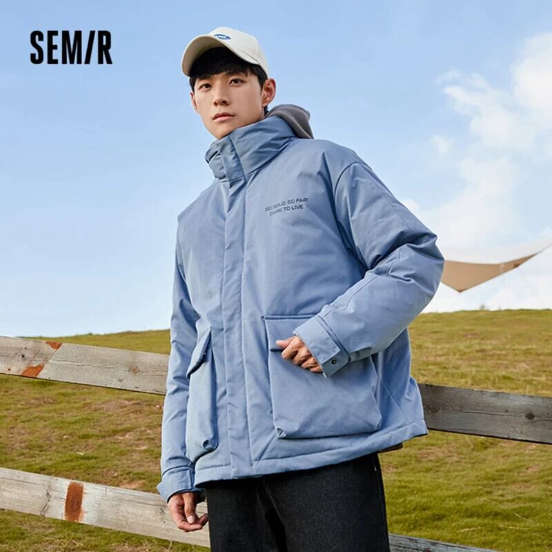 送料無料 Semir ダウンジャケット男性冬ルーズ暖かい基本レター印刷活力スタンドカラー 2023 ショートコート服 ウィンター 冬物 AE121277775691587245