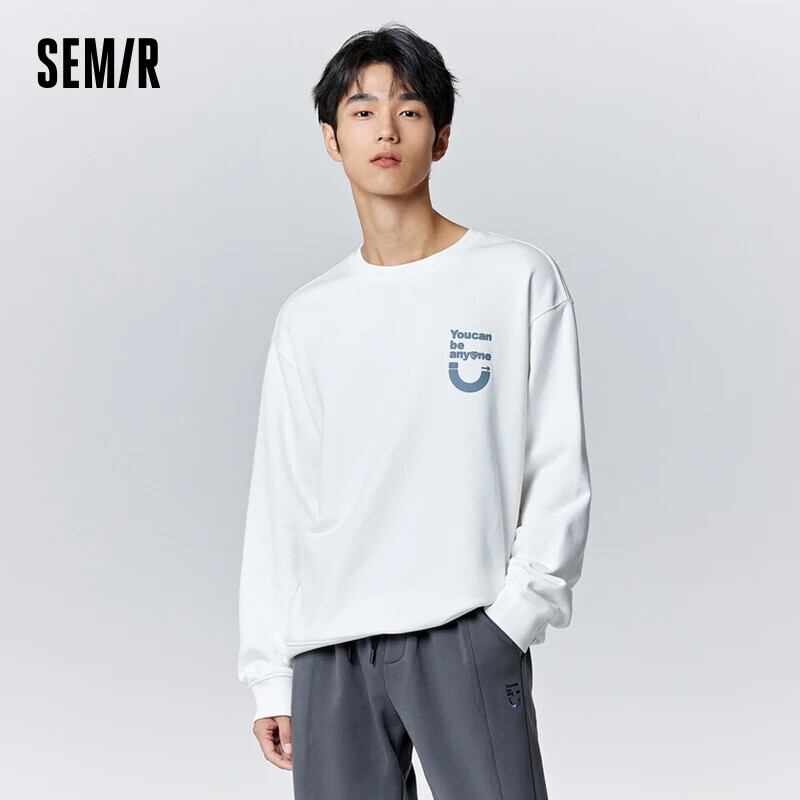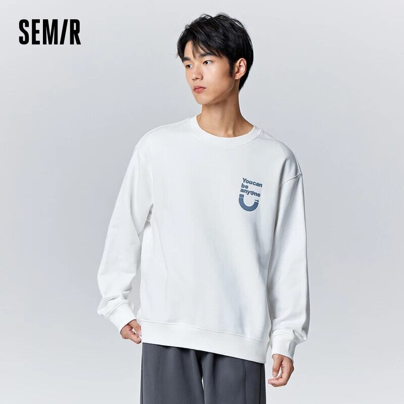 送料無料 Semir トレーナーメンズ冬無地シンプルな質感ベースレイヤートレンディなレタープリントプルオーバー長袖 ロング ウィンター 冬物 ソリッドカラー AE1212777767552334086