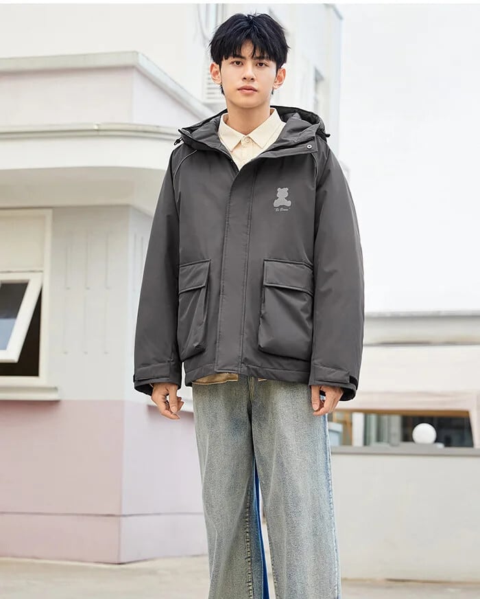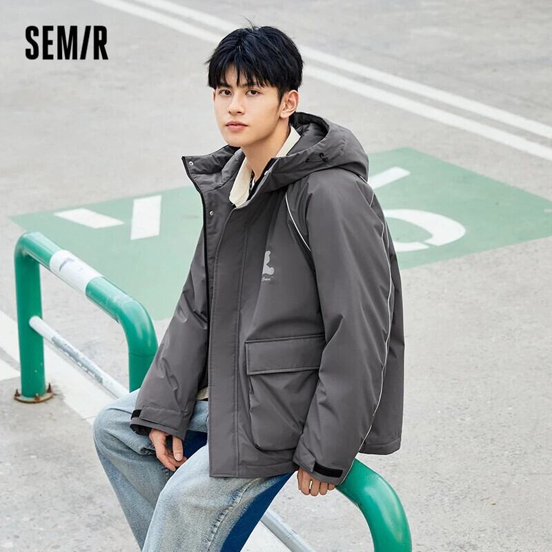 送料無料 Semir ダウンジャケット男性 2022 冬反射クマ柄オーバーサイズフード付きメンズ厚いコート ウィンター 冬物 AE1212777717729318925