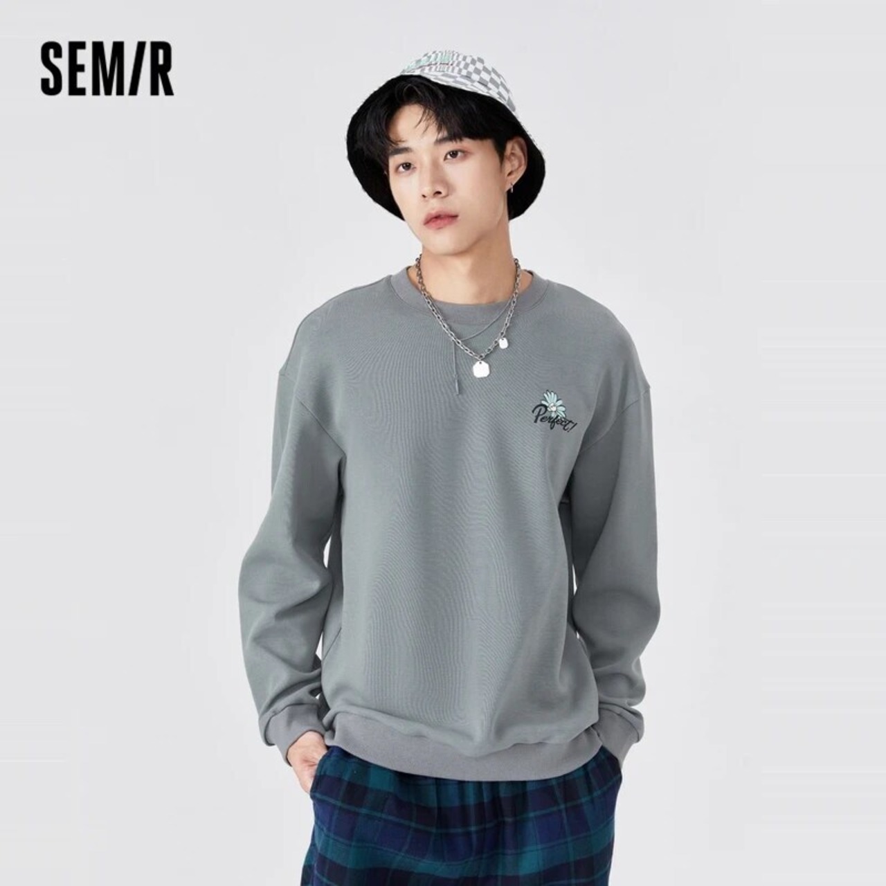 送料無料 SEMIR トレーナー男性グレー 2021 秋の花柄 O ネックパーカートレンディなルーズメンズ香港スタイルの服 オータム 秋物 Oネック フラワーデザイン AE1212777771060147804