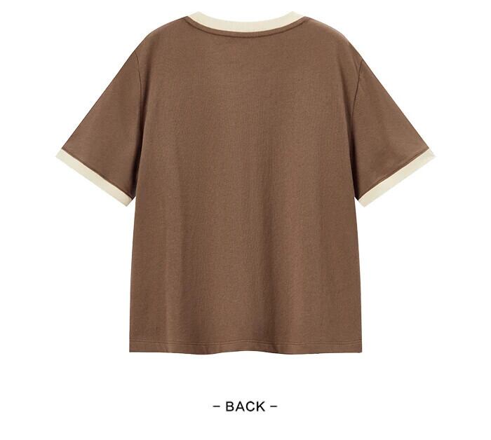 送料無料 セミール半袖 Tシャツ女性ピュアコットンレトロ 2023 夏コントラストカラー半袖 Tシャツ サマー 夏物 AE1212777793412979168