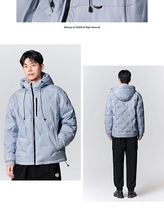送料無料 Semir ダウンジャケット男性 2023 冬屋外フード付きグースダウンジャケット Comtable ジャケットテクスチャシンプルなルーズジャケット ウィンター 冬物 AE1212777797121900471