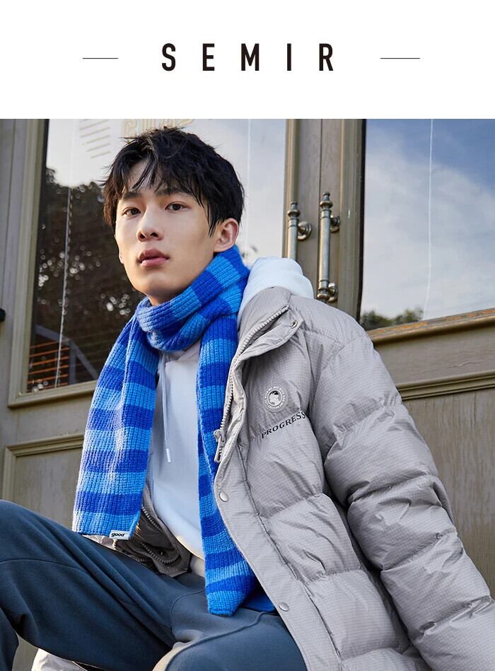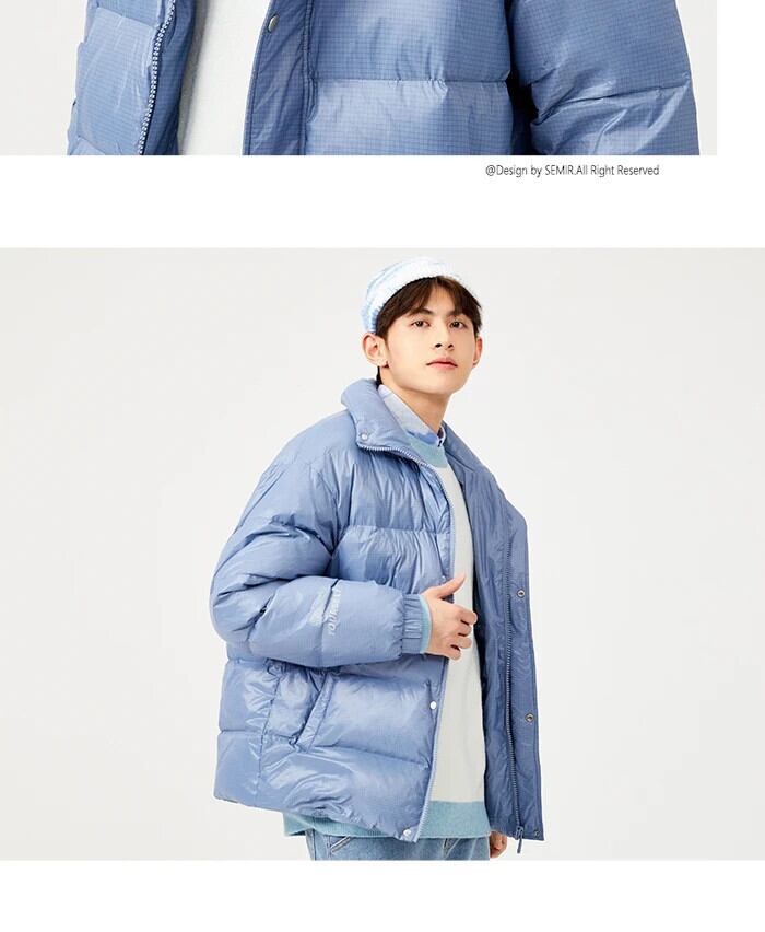 送料無料 Semir ダウンジャケット男性人格冬反射プリントトレンディな暖かいチェック柄ジャケット ウィンター 冬物 AE1212777742922640044
