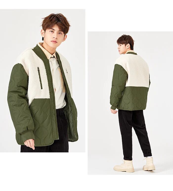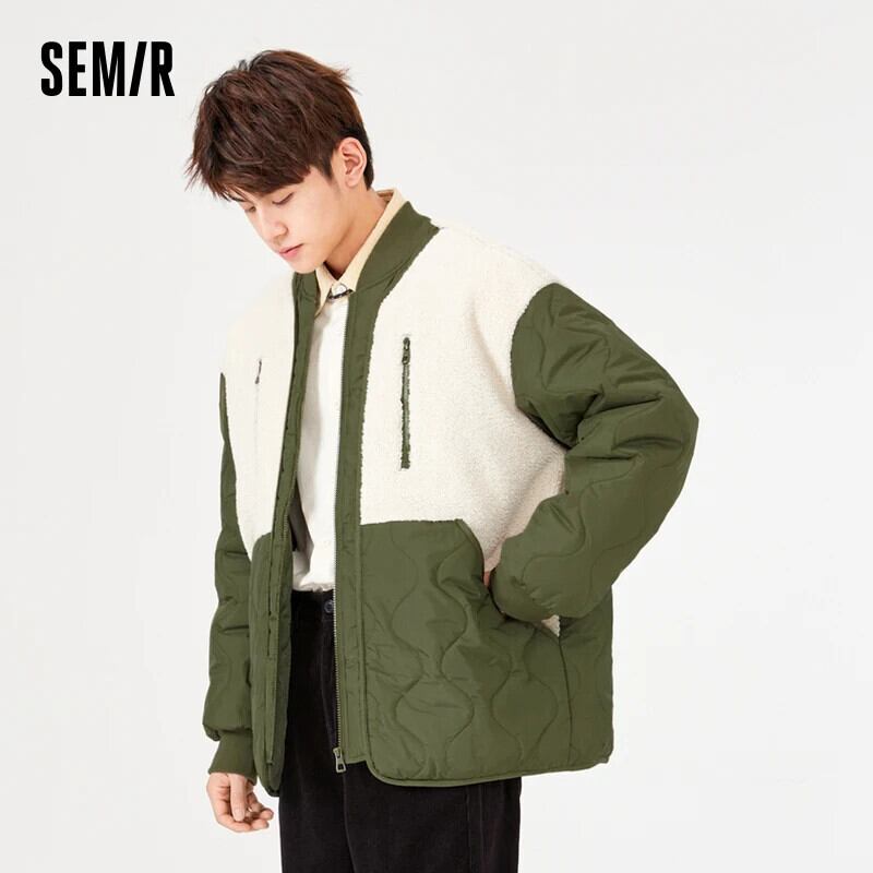 送料無料 Semir ジャケット男性 2023 秋と冬模造ラムウールスプライシングシンプルな暖かいコットンジャケット オータム 秋物 ウィンター 冬物 AE121277777234699760