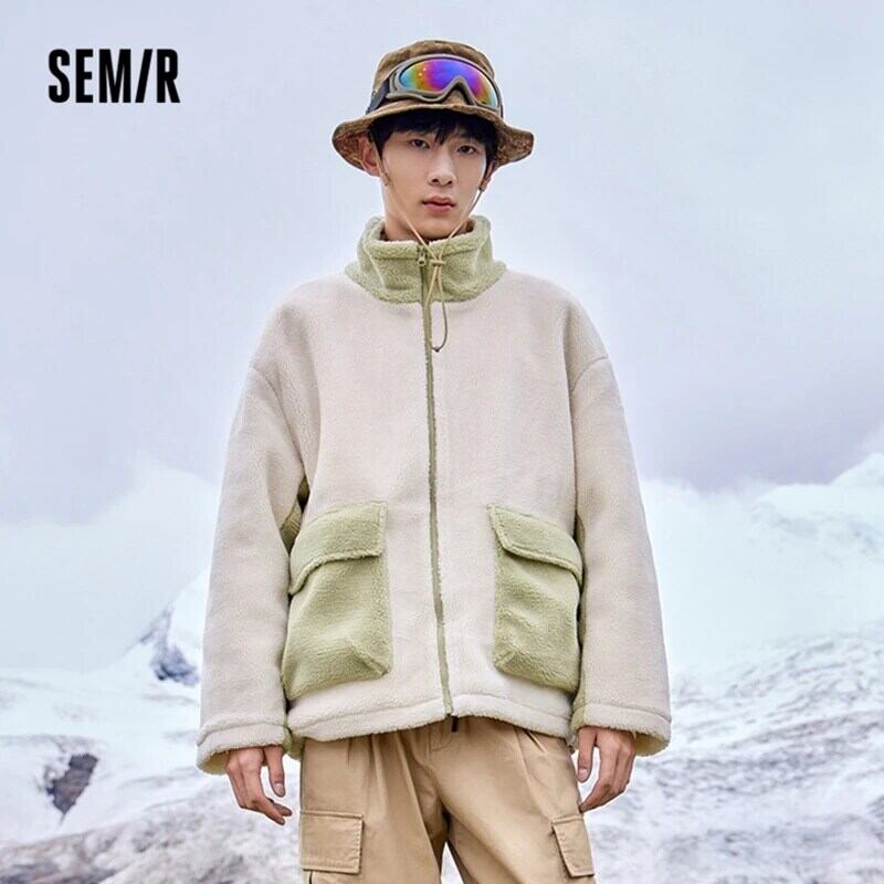 送料無料 Semir 綿コート男性冬ルース模造ラムウール肥厚ステッチコントラストカラーショート 2023 コート コットン ウィンター 冬物 AE121277771485127965