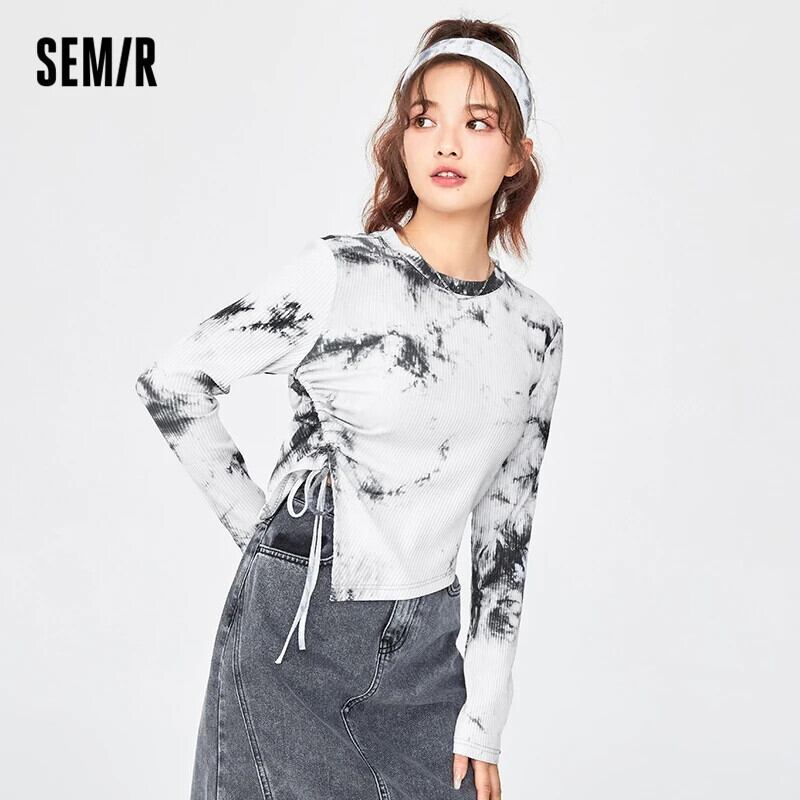送料無料 Semir 長袖 Tシャツ女性ショートスタイルニッチ春 2022 インク絞り染めボトリングシャツ甘くてクールなトレンド ロング 大人ガーリー スウィート キュート カジュアル スプリング 春物 AE1212777748902629326