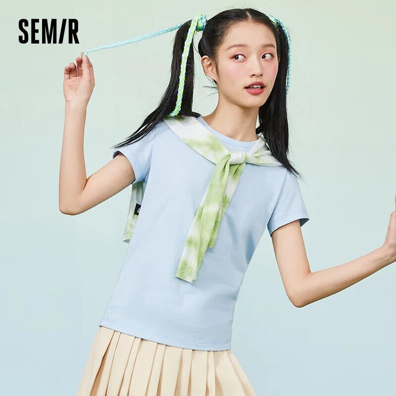 送料無料 SEMIR Tシャツ女性半袖綿白底 Tシャツ女性半袖トップス固体トレンド o ネック固体夏 ショート ホワイト コットン ハーフスリーブ サマー 夏物 Oネック ソリッドカラー AE1212777757247868088