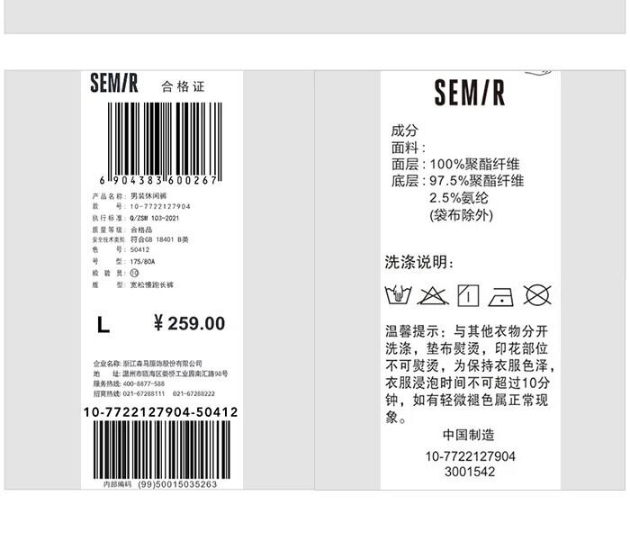 送料無料 Semir パンツ男性ルーズ巾着ズボンレターフリース 2023 ウィンタースポーツジョギングパンツ 冬物 AE1212777737166433846