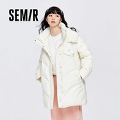 送料無料 Semir ダウンジャケット女性ロングテクスチャニッチ 2023 冬フード付きルーズ冬暖かいジャケット ウィンター 冬物 AE1212777765386397243
