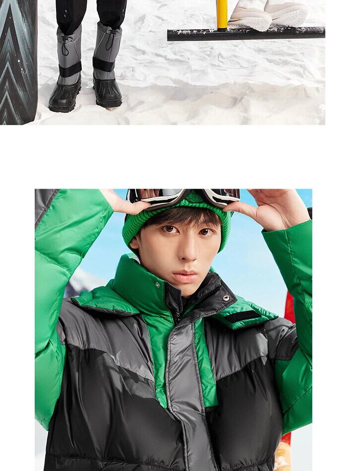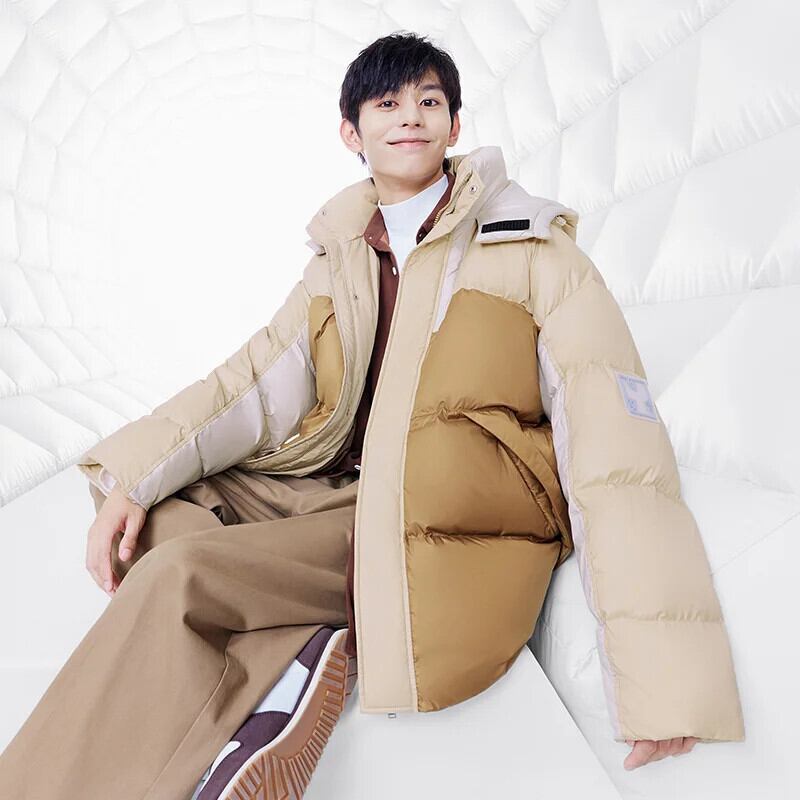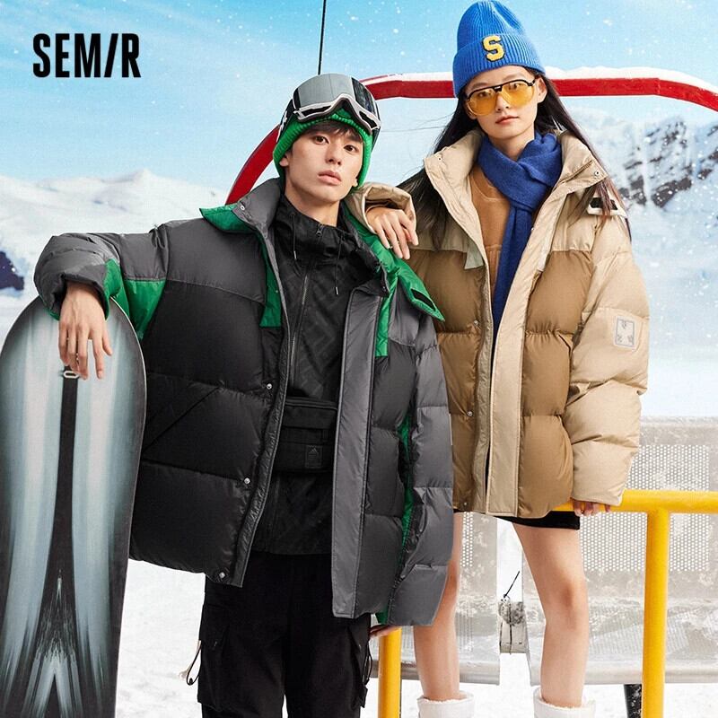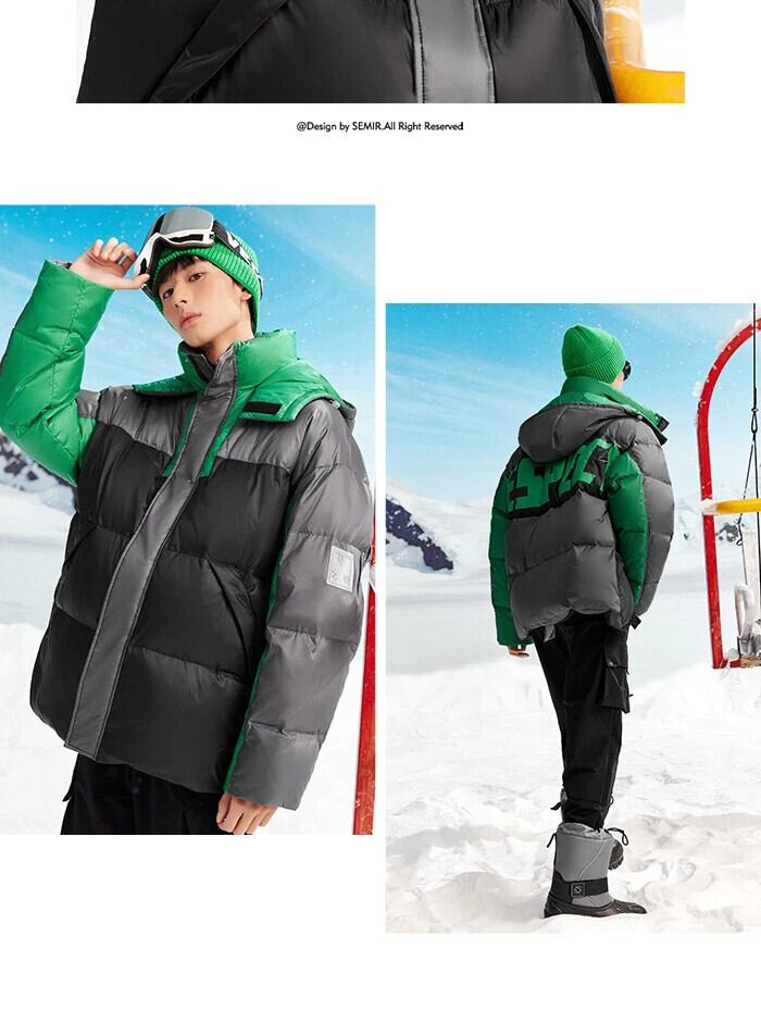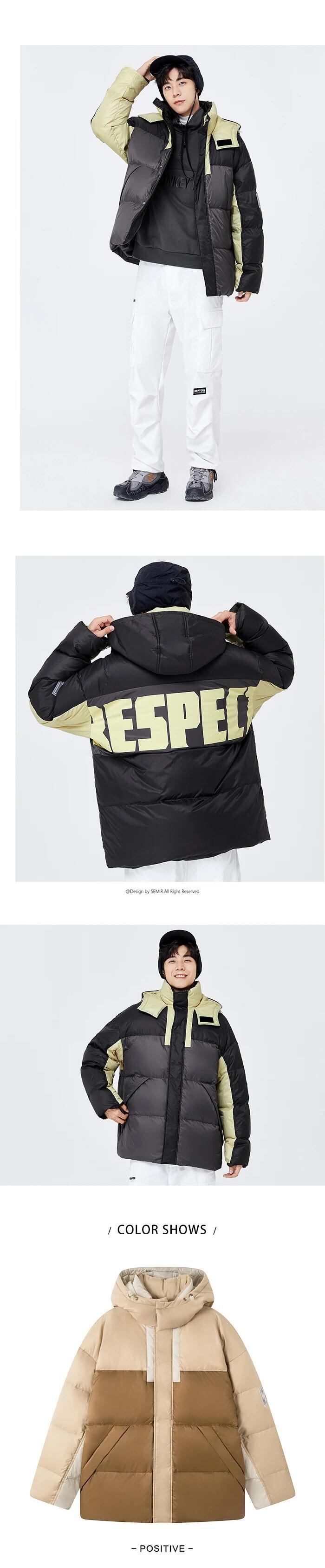 送料無料 Semir ダウンジャケット男性冬オーバーサイズコントラストカラーステッチトレンディな巾着フード付きトップ ウィンター 冬物 AE1212777773577626031