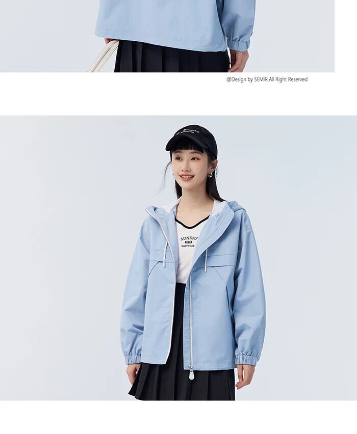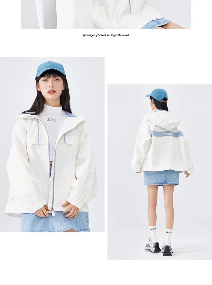 送料無料 Semir コート女性コントラストパネルフード付きルーズトップシンプル多用途 2023 春プリントジャケットイン スプリング 春物 AE1212777790255044968