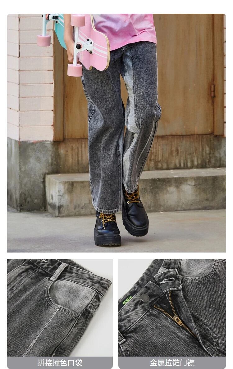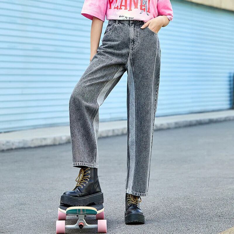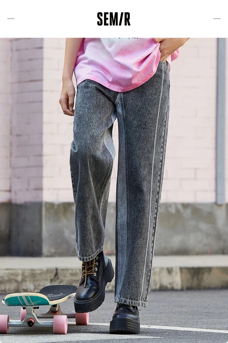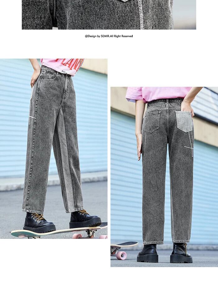 送料無料 SEMIR ジーンズ女性春 2021 ステッチストレート機能ウインドパンツルーズダディパンツウエスト スプリング 春物 AE1212777752560608170