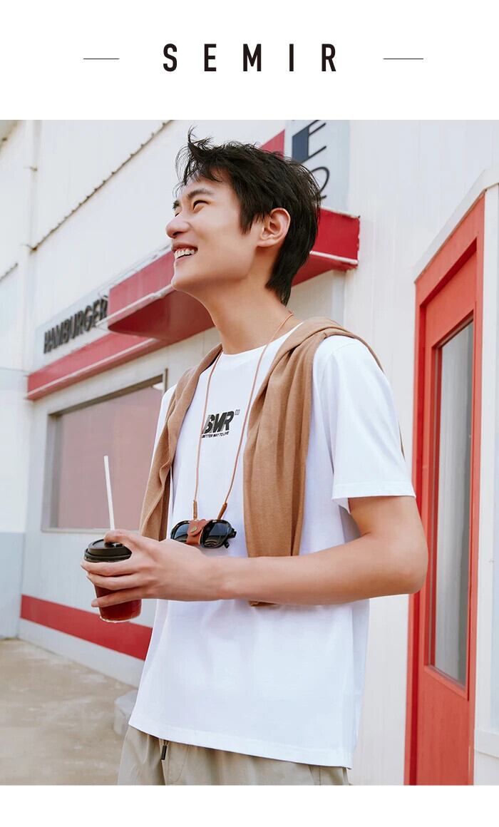 送料無料 Semir 半袖 Tシャツメンズ夏デイリーシンプル Comtable ラウンドネックソフトコットントレンディなレタープリント Tシャツ サマー 夏物 Oネック AE1212777781703452437