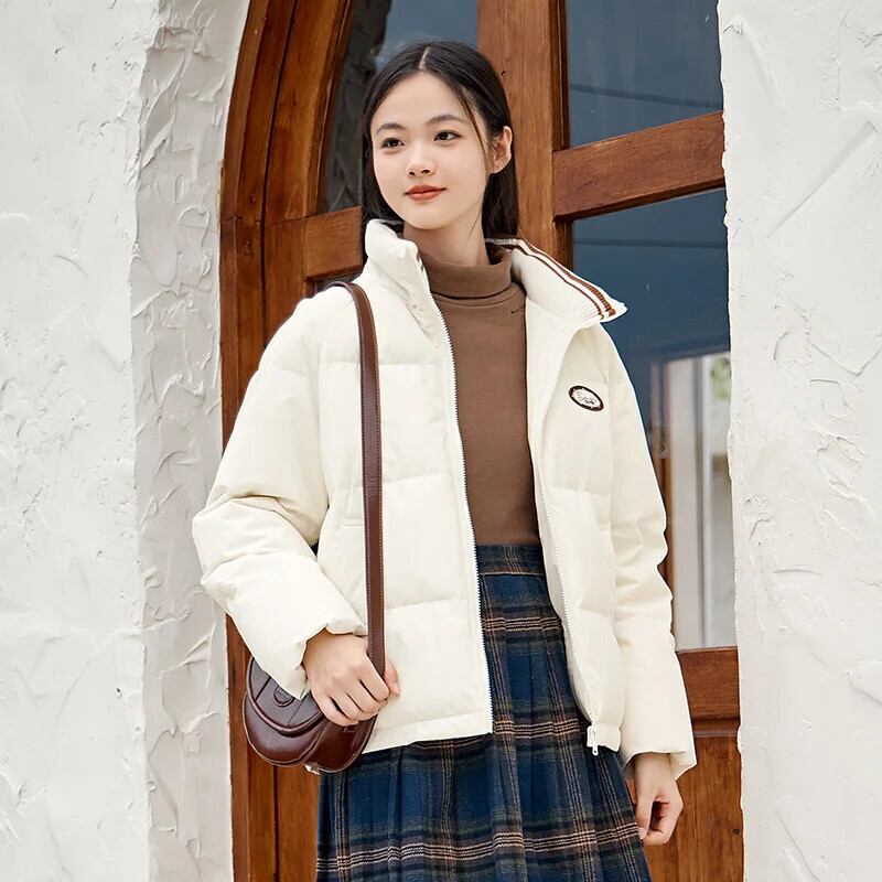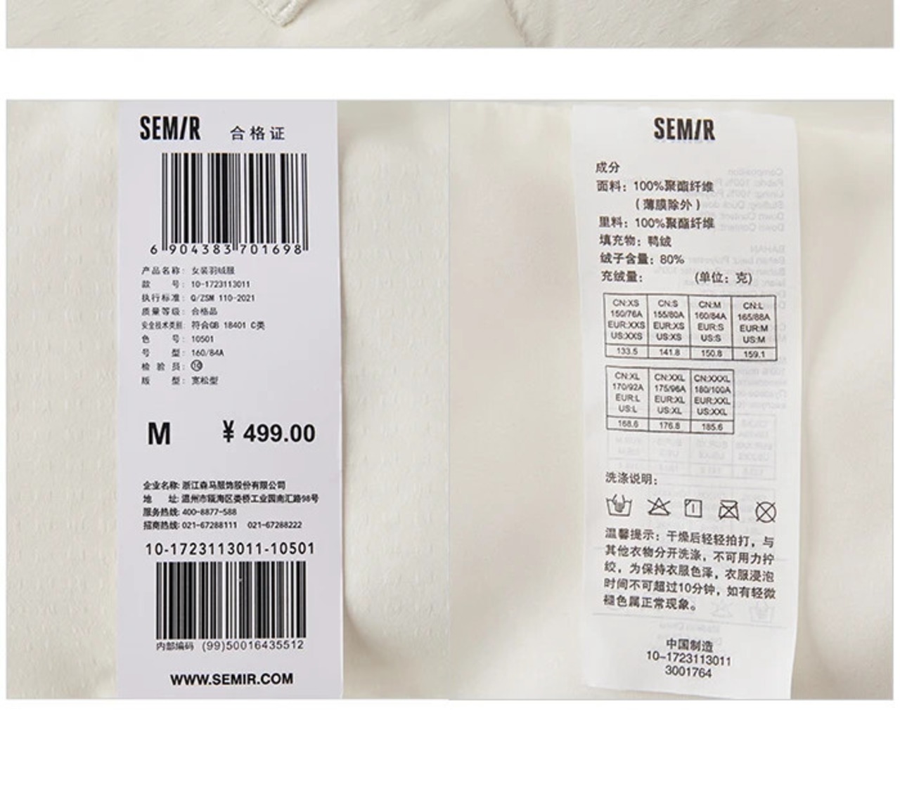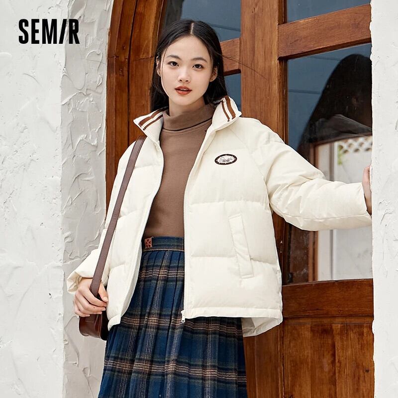 送料無料 Semir ダウンジャケット女性スタンドカラールーズ多用途 2023 冬テクスチャード可能な気質ジャケット レッド ウィンター 冬物 AE1212777794275827863
