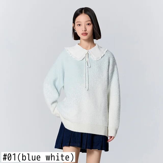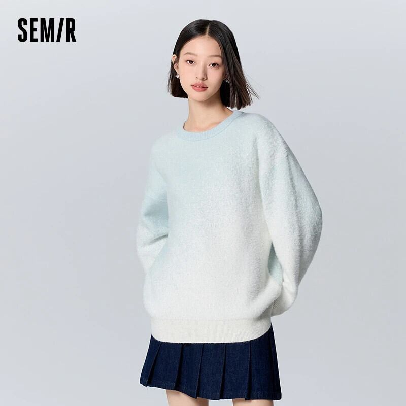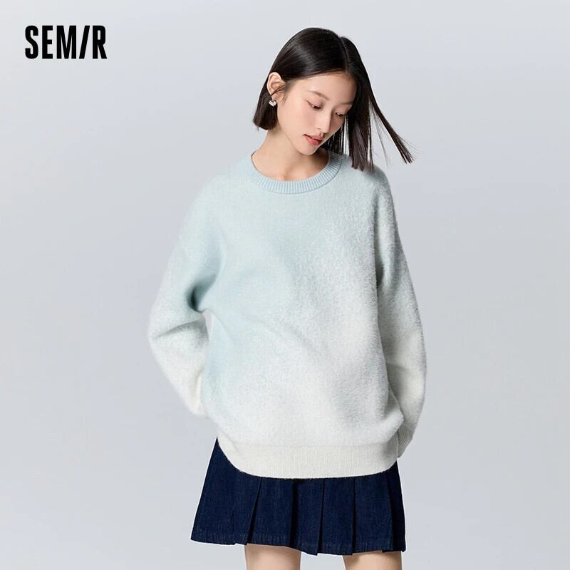送料無料 Semir セーター女性グラデーション緩い甘いニッチ冬 2023 ラウンドネックプルオーバー優しいロマンチックなセーター 大人ガーリー スウィート キュート カジュアル ウィンター 冬物 Oネック AE1212777769582040058