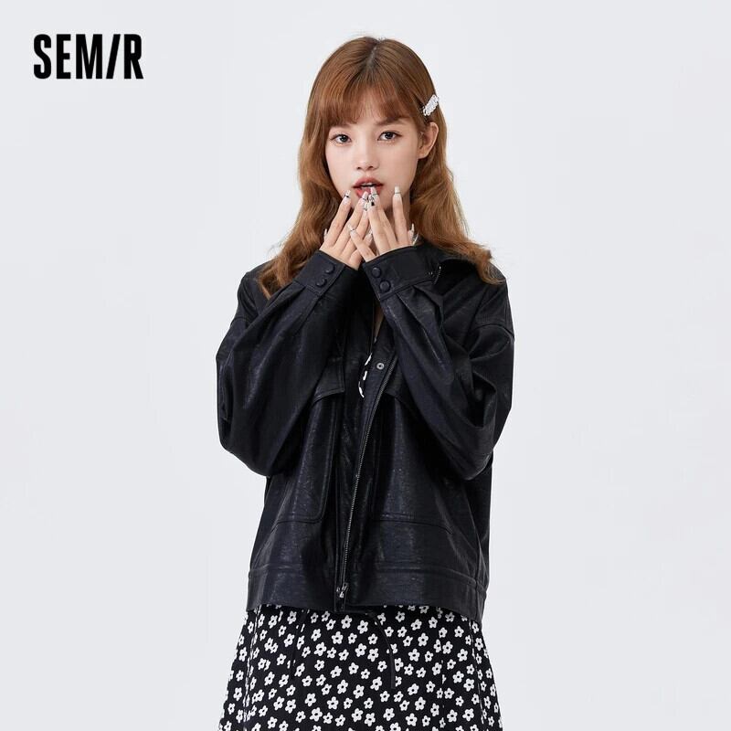 送料無料 SEMIR ジャケット女性のテクスチャレトロ 2021 秋スタイルルーズ Pu 模造革甘いクール黒ジャケット人気 ブラック 大人ガーリー スウィート キュート カジュアル オータム 秋物 レザー AE1212777776542801602