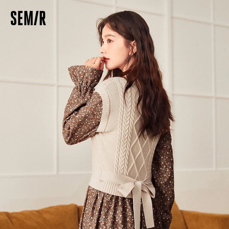 送料無料 Semir ドレス女性花柄ステッチ 2023 冬の弓ソフト通勤気質ドレス リボン ウィンター 冬物 AE121277773823319800