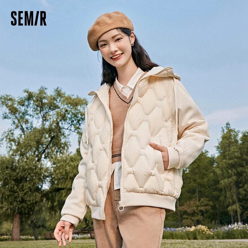 送料無料 Semir ジャケット女性 3 プルーフルーズスプライスフード付きジャケット 2023 秋優しい多用途ラグランスリーブダウンジャケット オータム 秋物 AE1212777734298011815