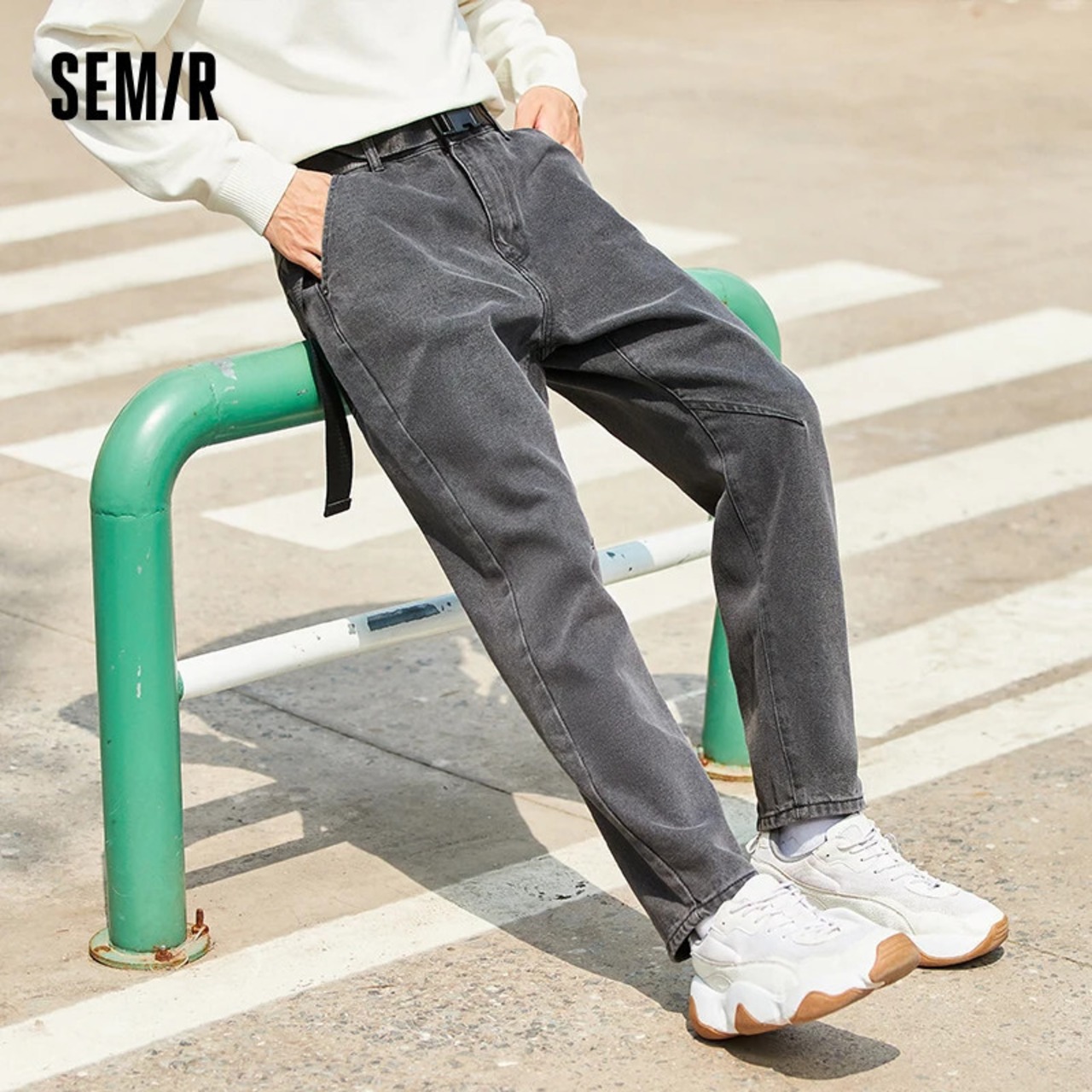 送料無料 Semir ジーンズ男性秋と冬の厚いセクションルーズ薄いテーパードパンツ男性カッティングライン冬黒ズボン レッド ブラック オータム 秋物 ウィンター 冬物 AE1212777730860155050