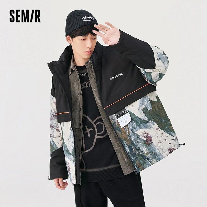 送料無料 Semir コットンジャケットメンズ冬の感覚ルーズコントラストカラースプライシング暖かいジャケット ウィンター 冬物 AE1212777779565552117