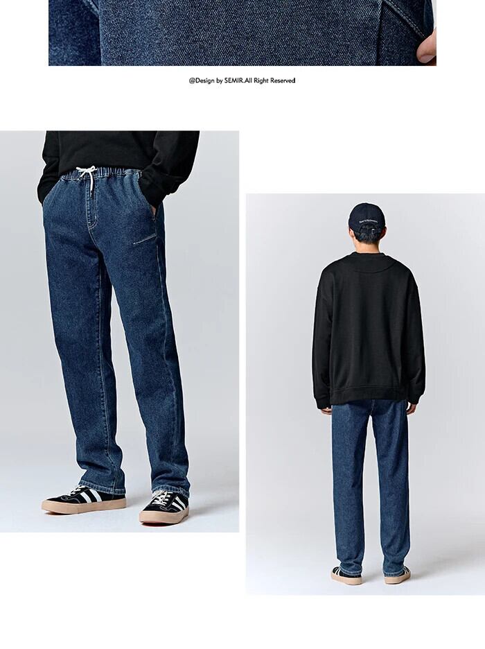送料無料 Semir ジーンズ男性 2023 冬シンプルな Clic バージョン Comtable 弾性ウエストバンド起毛ストレートズボン エラスティック 伸縮 ウィンター 冬物 AE1212777744441078056
