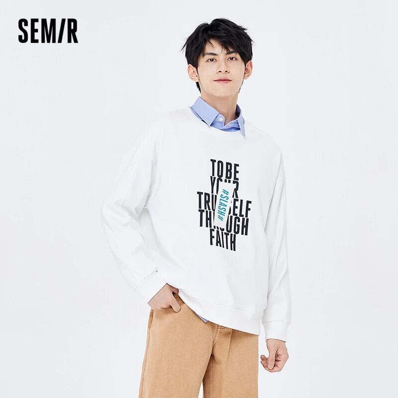 送料無料 Semir トレーナーメンズルーズベルベットコントラストレタープリントラウンドネック 2023 冬ラグランプルオーバー ウィンター 冬物 Oネック AE1212777730993772004
