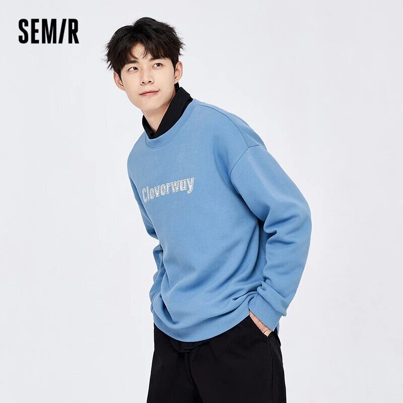 送料無料 Semir トレーナーメンズラウンドネック 2023 冬暖かいプラスベルベットの文字刺繍トレンディなトレーナー レッド ウィンター 冬物 Oネック AE121277771757772673