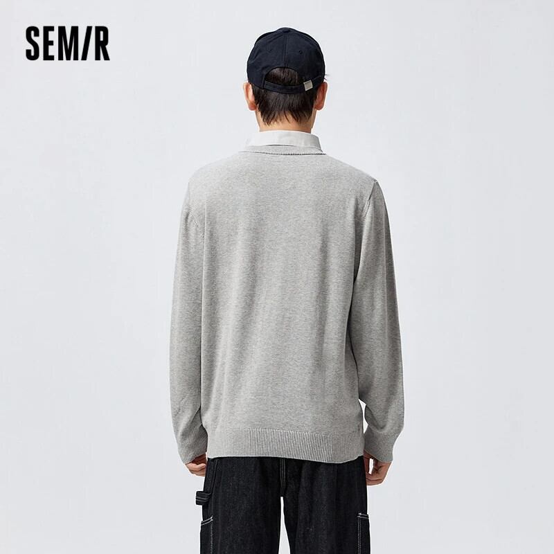 送料無料 Semir ニットウェアメンズ春偽二枚可能 2023 通勤スタイルシンプルな文字刺繍セーター スプリング 春物 AE1212777798875761710