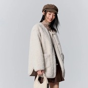 送料無料 Semir ジャケット女性ミッドレングススリットルーズ 2023 冬レトロシンプルなぬいぐるみジャケット ウィンター 冬物 AE121277773675458598