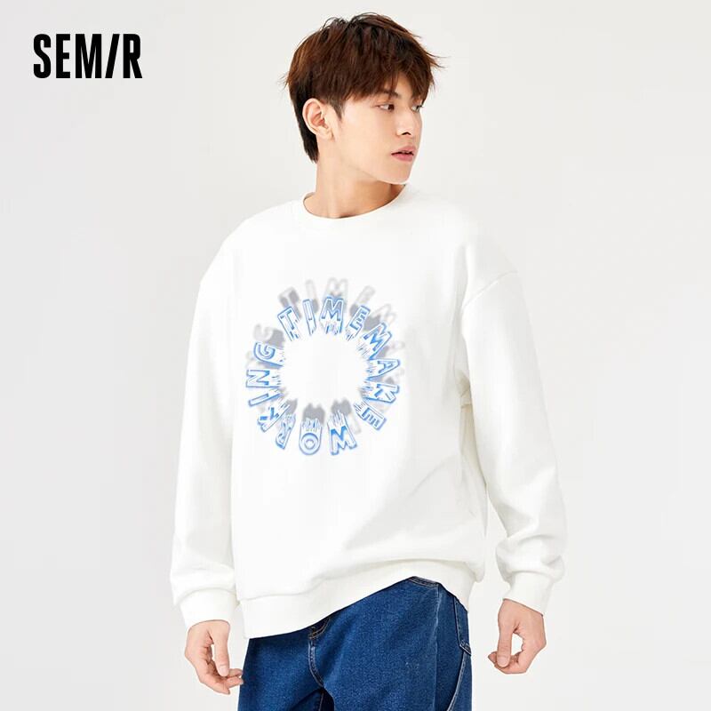 送料無料 Semir セーター男性トレーナー肥厚ベルベットエネルギッシュな冬春秋暖かい手紙白ラウンドネックトップ ホワイト スプリング 春物 オータム 秋物 ウィンター 冬物 Oネック AE1212777763434224903
