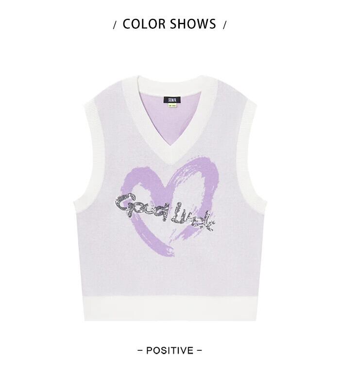 送料無料 Semir 2023 女性ベスト春秋緩い甘いクールトップ V ネックレイヤード着用ジャカードコントラストカラーニットベスト女性 レッド 大人ガーリー スウィート キュート カジュアル スプリング 春物 オータム 秋物 Vネック AE1212777774213521323