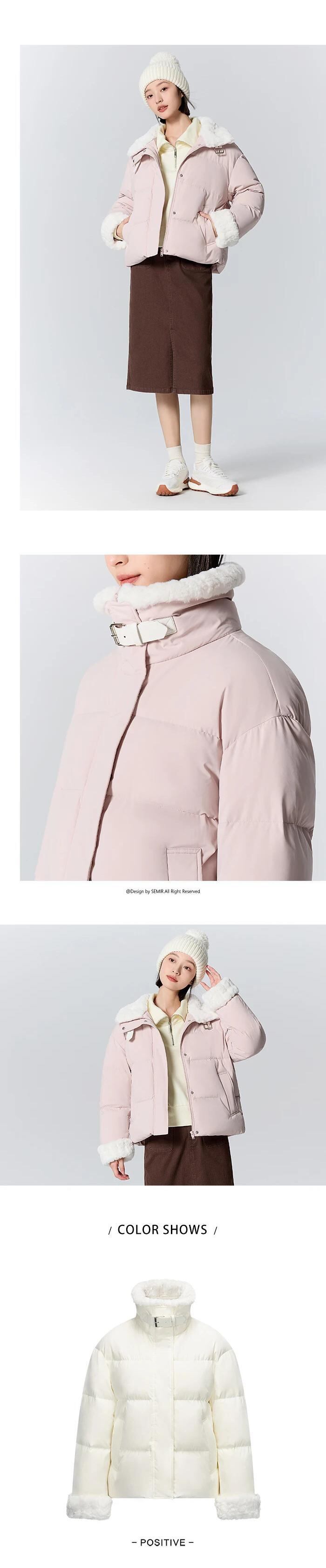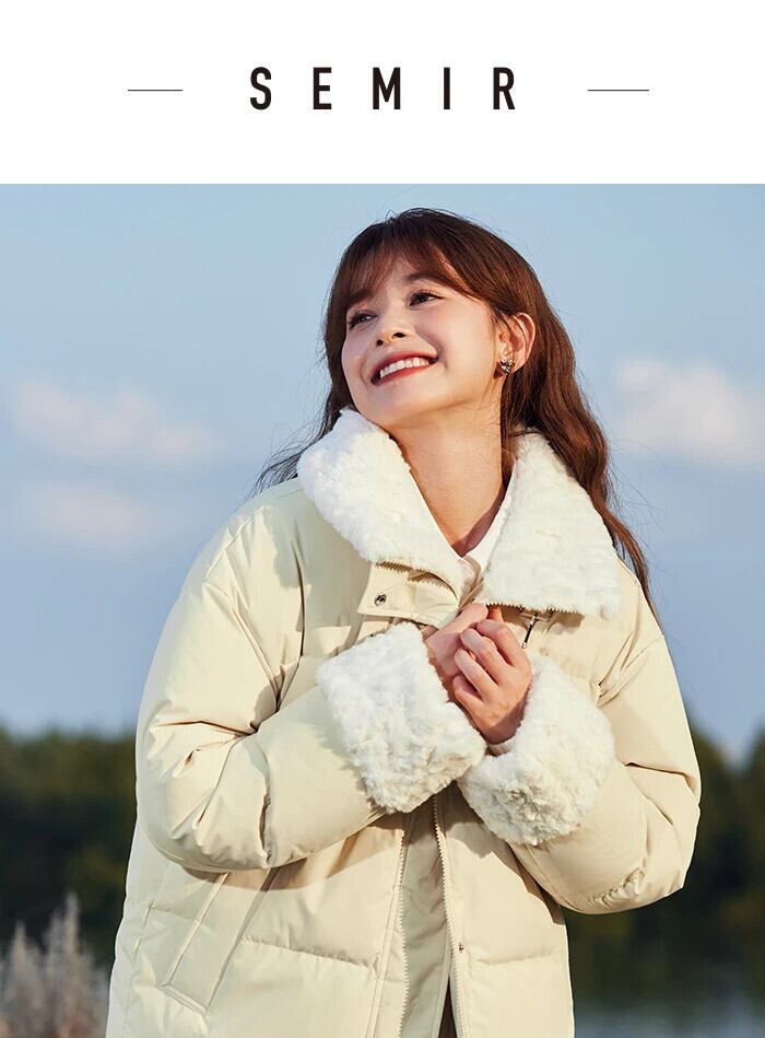 送料無料 Semir ダウンジャケット女性防風防水ルーズ 2023 冬ステッチ模造ウサギの毛皮スタンドカラーミルクホワイトダウン J ウィンター 冬物 AE1212777751467546551
