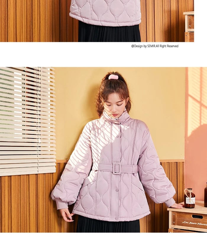 送料無料 Semir 綿服スタンドカラーウエスト 2023 冬ルーズスウィートウェーブキルティングコットンジャケット 大人ガーリー キュート カジュアル ウィンター 冬物 AE1212777720040818700