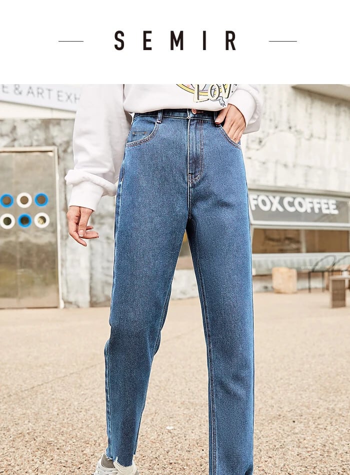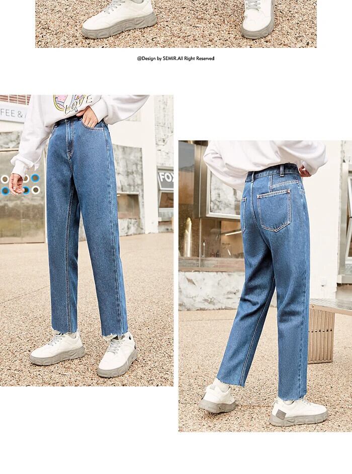 送料無料 Semir ジーンズ女性のほつれたエッジが脚を長く見せます 2023 冬スリムタイプストレートパンツ ロング ウィンター 冬物 AE121277774354603428