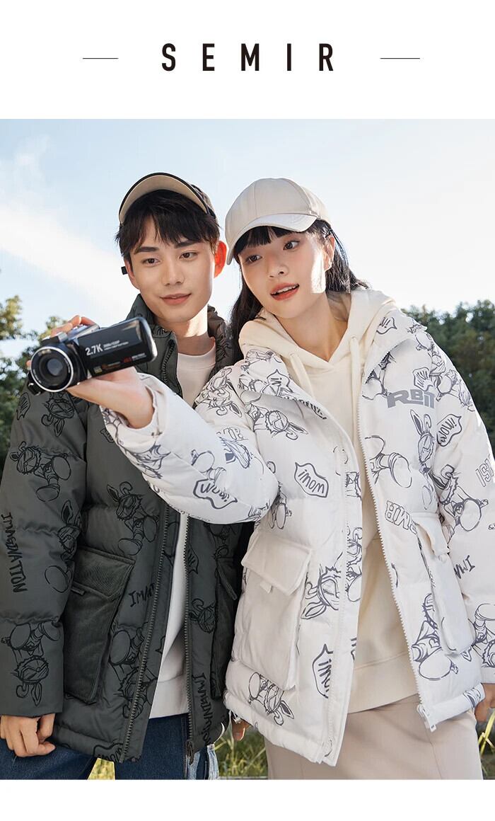 送料無料 Semir ダウンジャケット冬メンズ漫画フルプリントスタンドカラートップ 2023 緩い厚いジャケット ウィンター 冬物 AE1212777723553178844