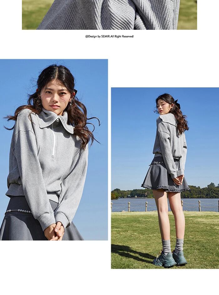 送料無料 Semir トレーナー女性ラペルジャケット 2022 春ワッフルジャケットスポーツ風ジッパーカーディガンパーカー スプリング 春物 AE1212777792121541651